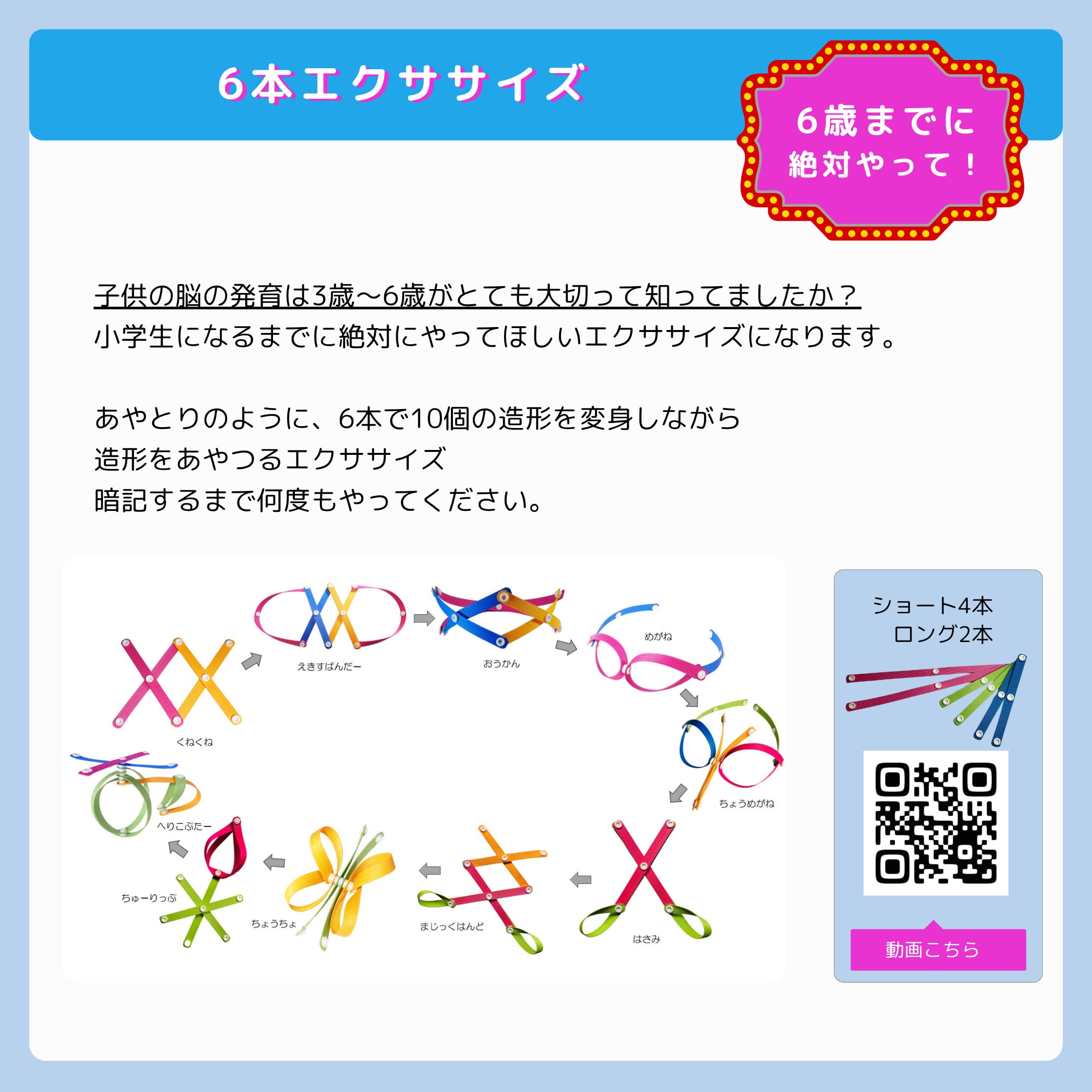 3歳~6歳にお勧めする6本エクササイズ、造形を変えていく10個のエクササイズを体験出来ます。樹脂製の素材で耐久性がアップ。何度もトライできます。